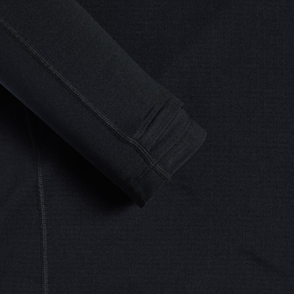 유선형 어깨 패턴이 몸에 자연스럽게 밀착되어 안정적인 핏을 연출하고, 소매 끝단에는 엄지 손가락을 걸 수 있는 구조를 더해 착용 시 소매가 들리거나 말리는 불편함을 줄였습니다.
