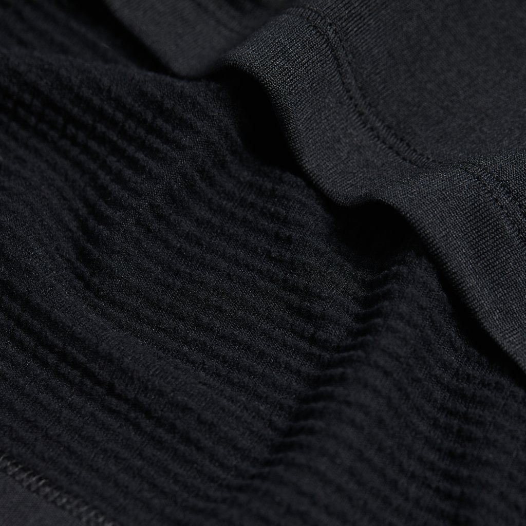 가볍고 보온성을 제공하는 원단으로 활동성 및 실용성을 높였으며, 겨드랑이 부분에는 신축성 좋은 소재를 배치해 움직임이 많은 러닝 환경에서도 편안한 착용감을 제공합니다.