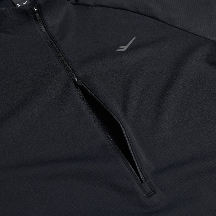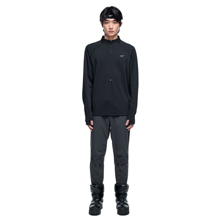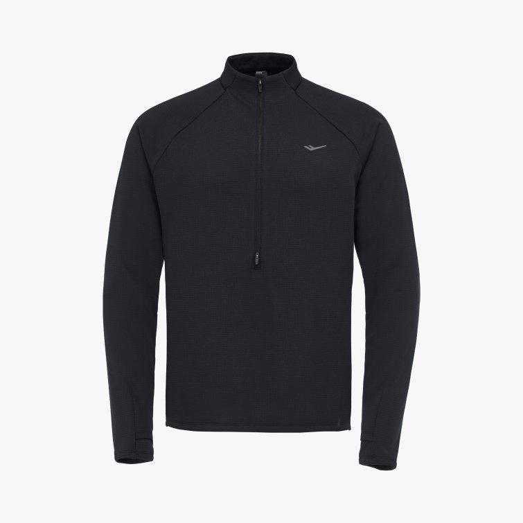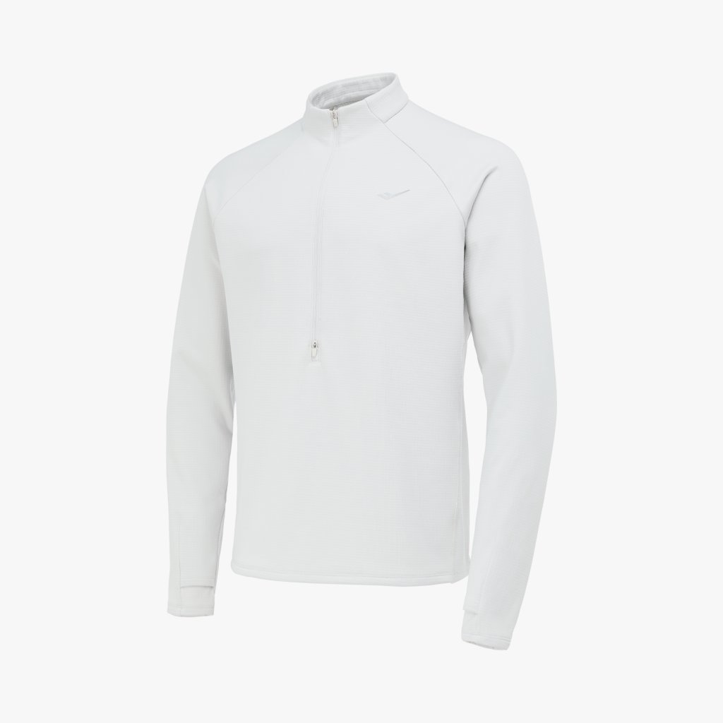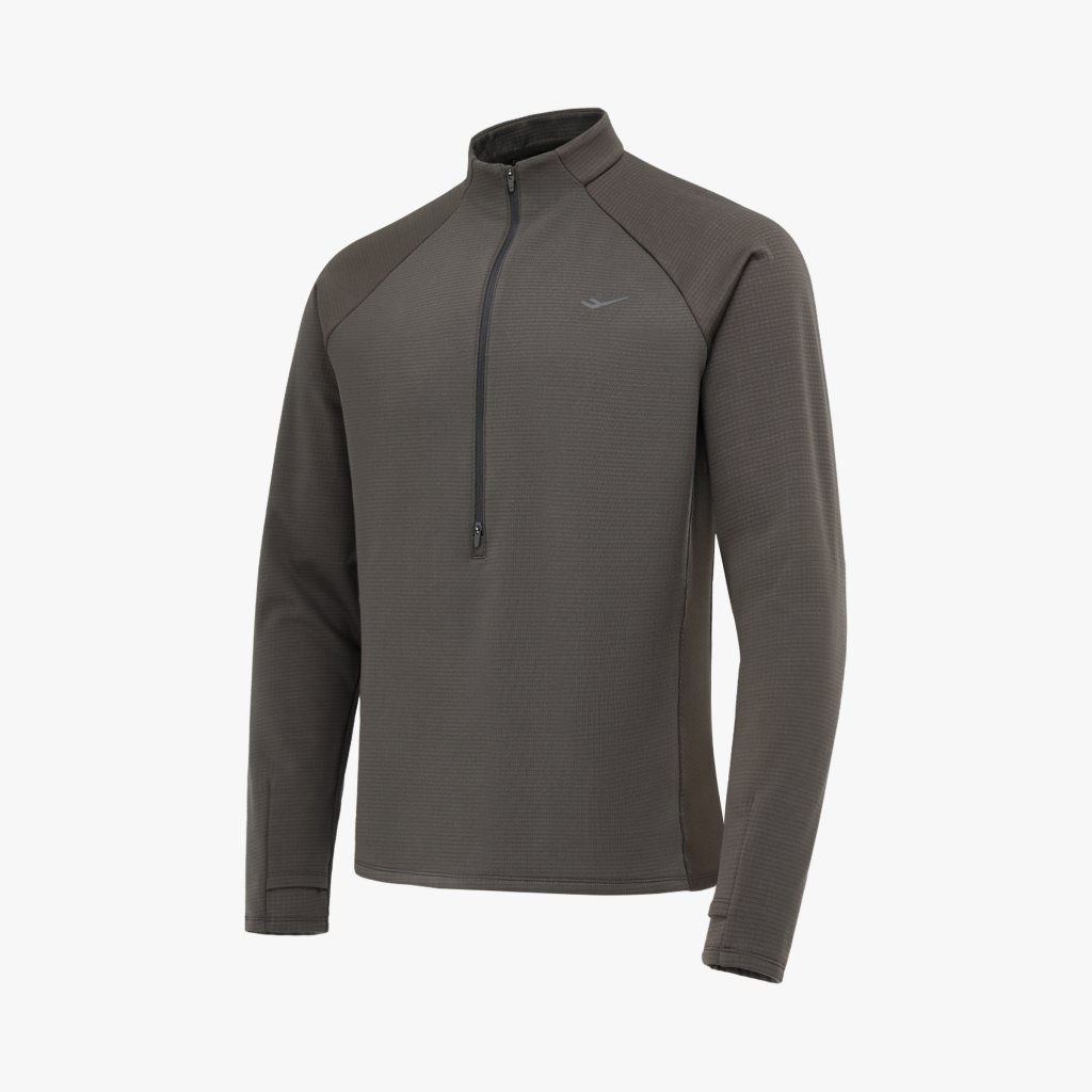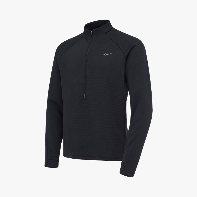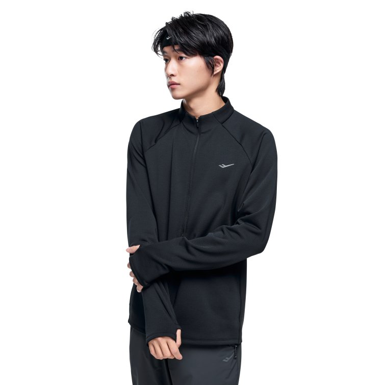 신축성과 보온성을 갖춘 동계 남성 하프 집업 티셔츠로, 엄지홀 구조와 지퍼 통풍 설계, 리플렉티브 디테일로 러닝 시 활동성과 가시성을 높인 아이템입니다.