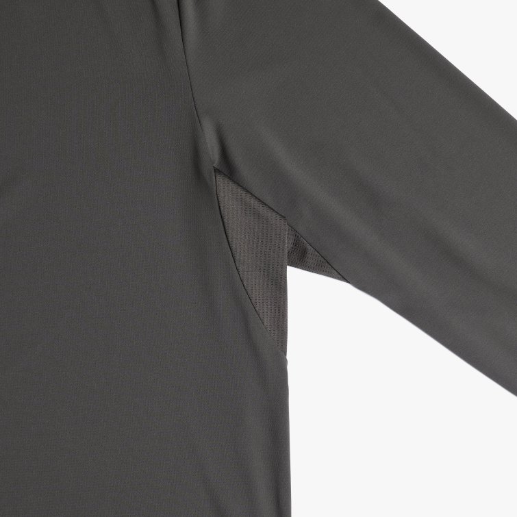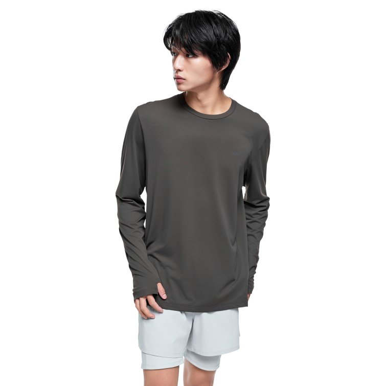 흡습속건 소재와 겨드랑이 메쉬 구조를 적용해 통기성과 활동성을 높인 간절기 러닝 긴팔 티셔츠로, 엄지홀 구조와 리플렉티브 로고로 안정성과 가시성을 더한 아이템입니다.