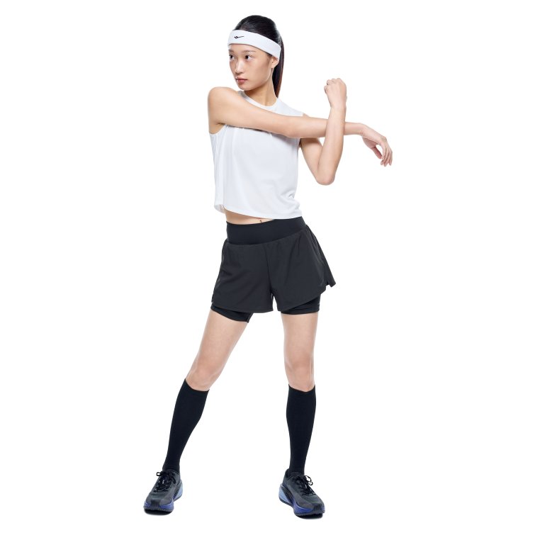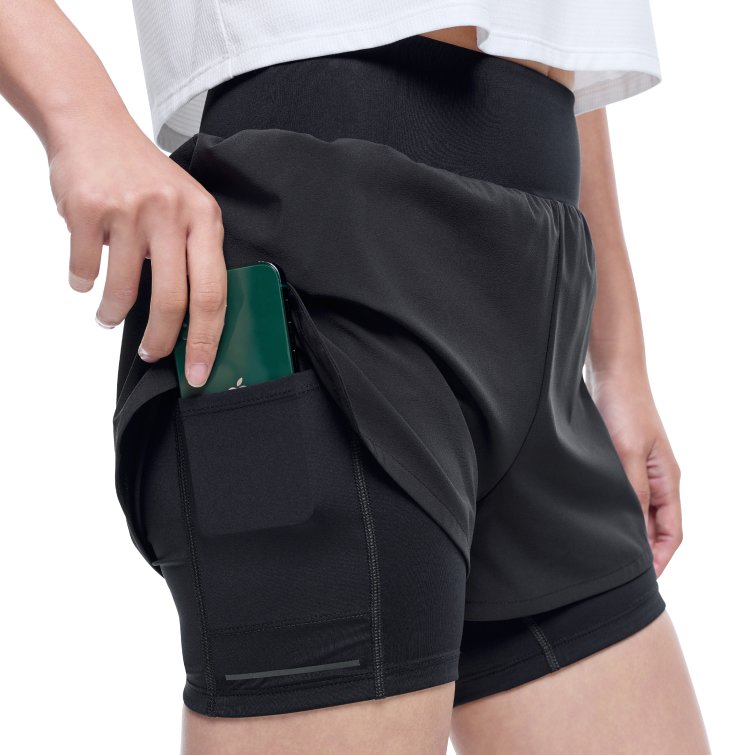 레깅스가 결합된 구조로 활동성과 안정적인 착용감을 제공하는 여성 러닝 쇼츠로, 수납 포켓과 리플렉티브 디테일을 더해 실용성과 가시성을 높인 아이템입니다.