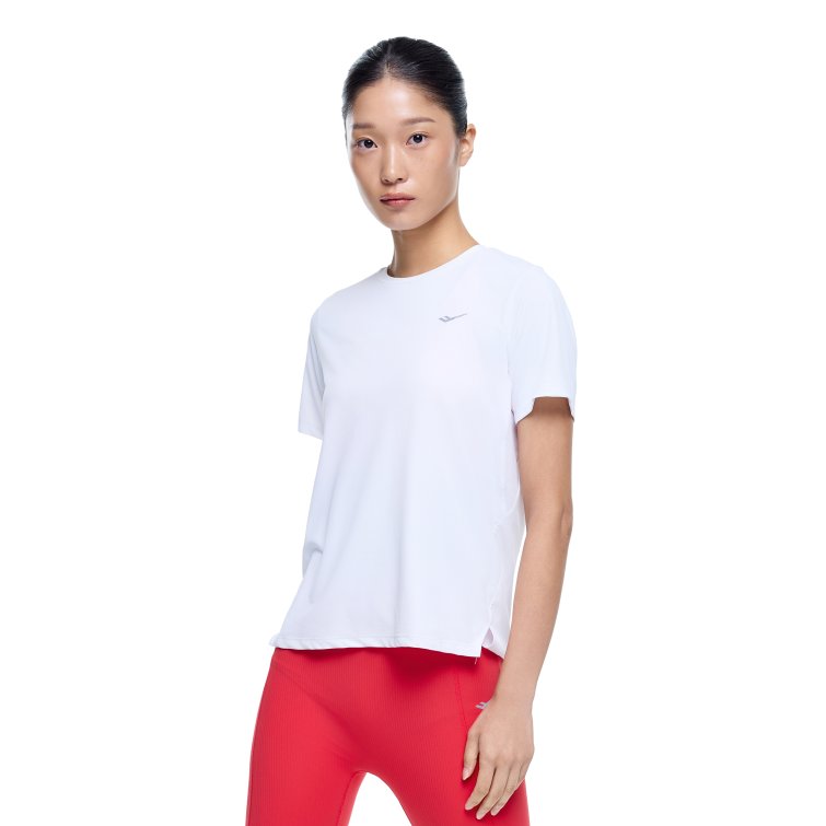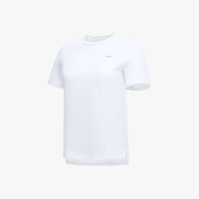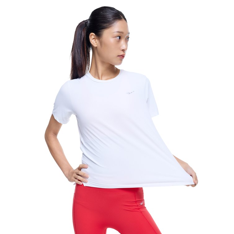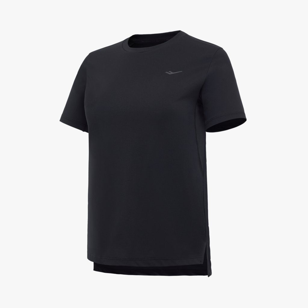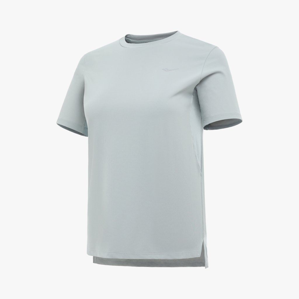 흡습속건 소재와 메쉬 통풍 구조를 적용해 쾌적한 착용감을 제공하는 여성 기능성 반팔 티셔츠로, 트임 디테일과 리플렉티브 로고로 활동성과 가시성을 높인 아이템입니다.