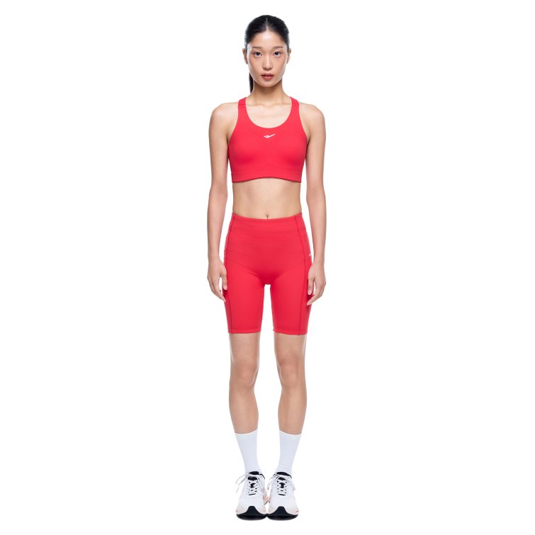 넓은 숄더 스트랩과 교차형 등판 구조로 안정적인 착용감을 제공하는 여성 러닝 브라탑으로, 사이즈 조절 장치와 리플렉티브 디테일로 핏과 가시성을 높인 아이템입니다.