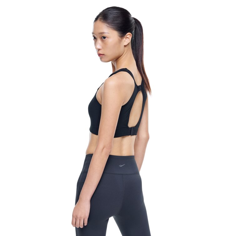 넓은 숄더 스트랩과 교차형 등판 구조로 안정적인 착용감을 제공하는 여성 러닝 브라탑으로, 사이즈 조절 장치와 리플렉티브 디테일로 핏과 가시성을 높인 아이템입니다.