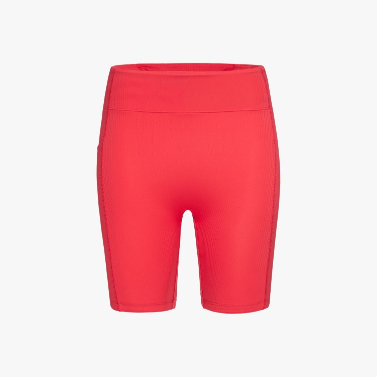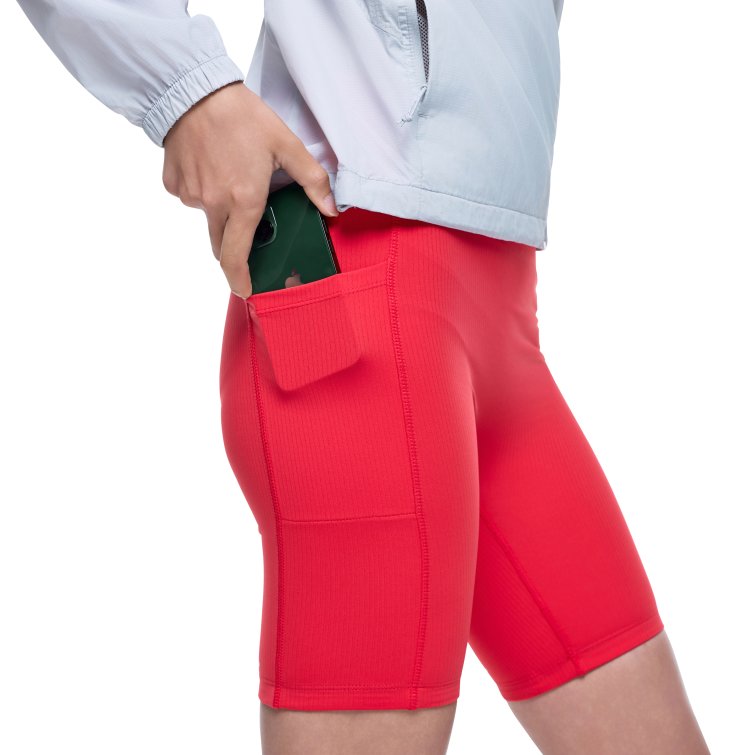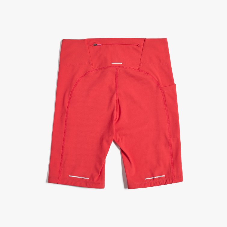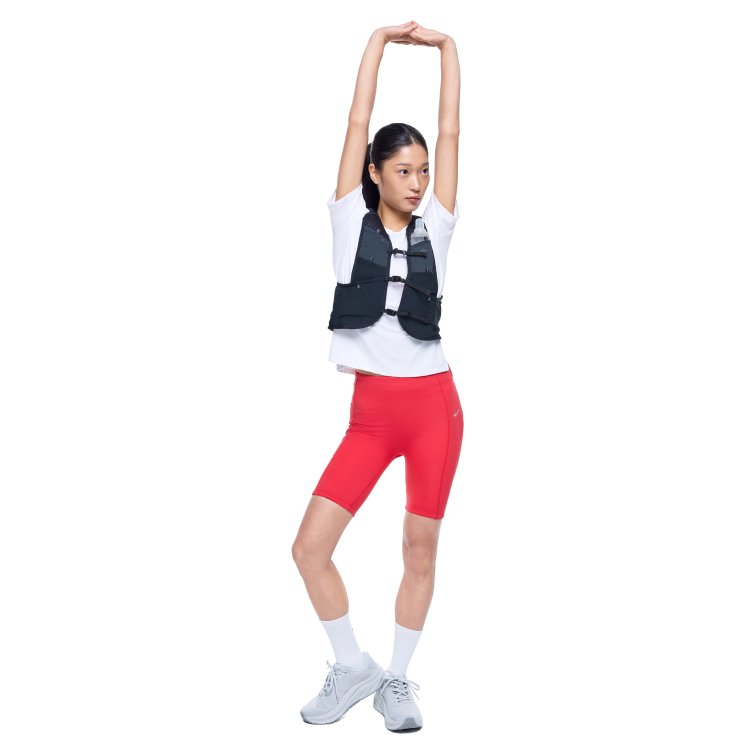 신축성 소재와 하이웨이스트 구조로 안정적인 착용감을 제공하는 여성 숏 러닝 타이츠로, 수납 포켓과 리플렉티브 디테일로 실용성과 가시성을 높인 아이템입니다.