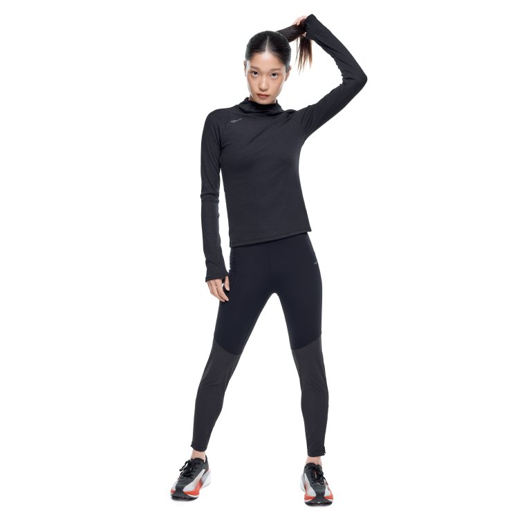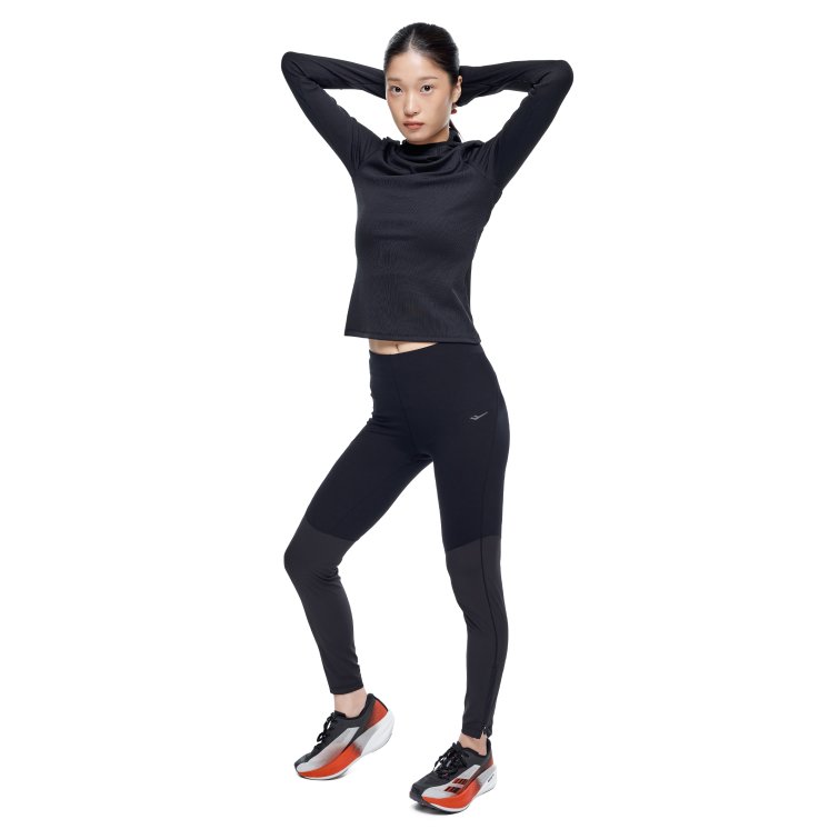 하이웨이스트 구조와 신축성 소재를 적용해 안정적인 착용감을 제공하는 여성 동계 러닝 타이츠로, 지퍼 밑단과 수납 포켓, 리플렉티브 디테일로 실용성과 가시성을 높인 아이템입니다.