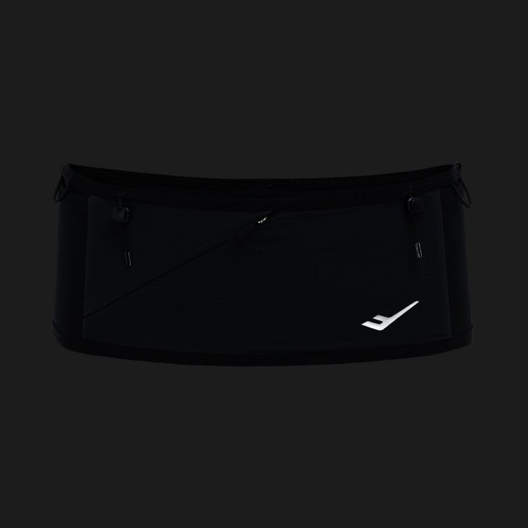 경량 메쉬 소재로 제작된 러닝 벨트로, 지퍼 포켓과 오픈 포켓 구성으로 수납력을 높였으며 배번 고정 스트링과 리플렉티브 디테일로 실용성과 가시성을 더한 아이템입니다.