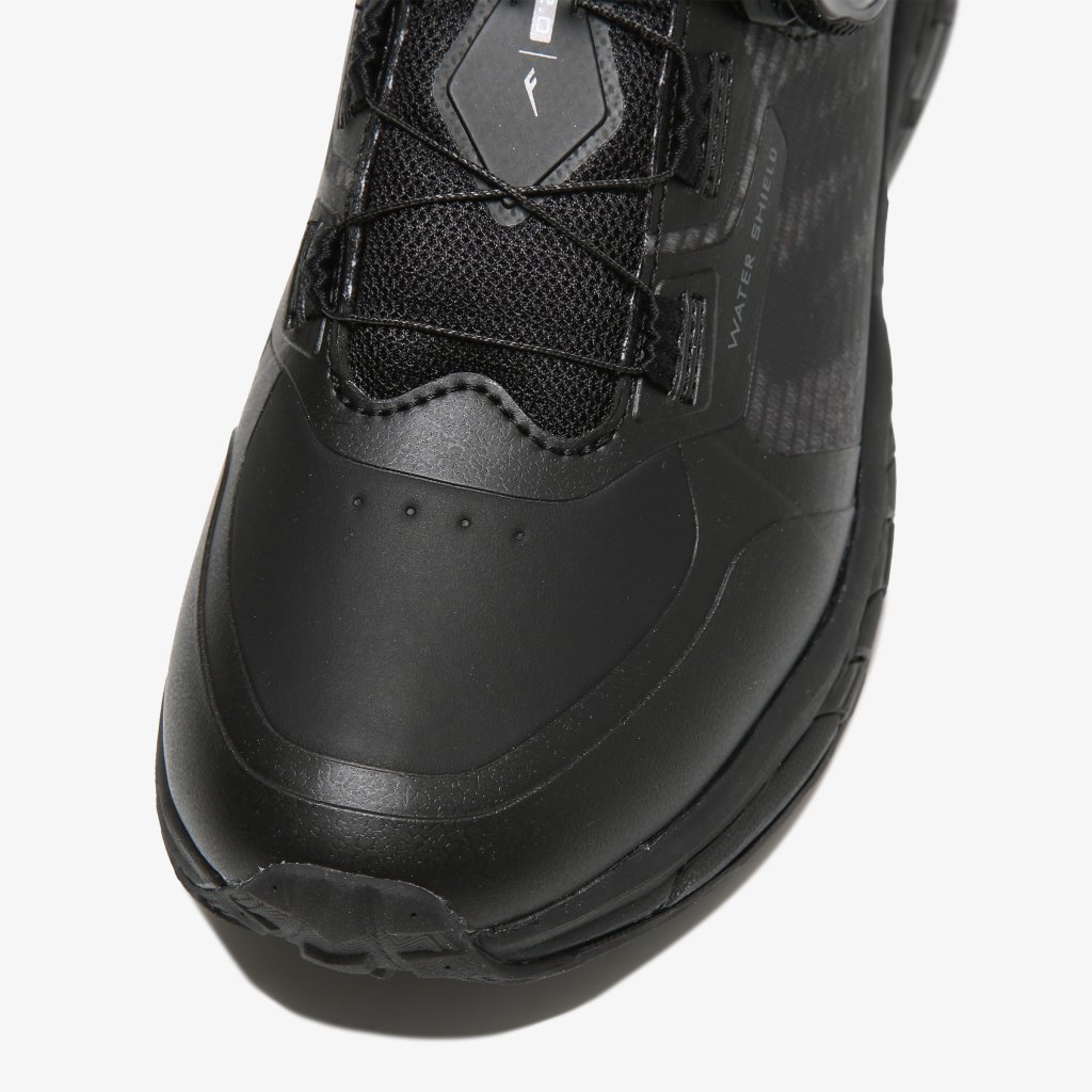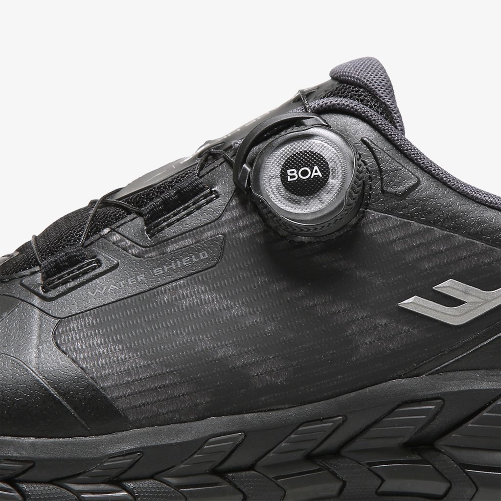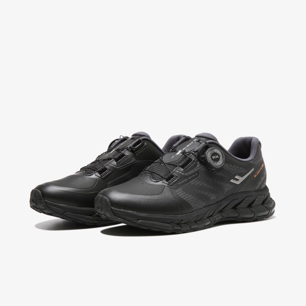 • 한국타이어 콜라보레이션 상품으로, 미끄럼 방지에 탁월한 타이어 트레드 패턴 적용 • 발/방수 처리 (WATER SHIELD)로 생활 방수가능 • 힐에 PEBAX(고기능 탄성소재) 사용하여 에너지 리턴 강화 • 미세조정이 가능한 BOA® Fit System 적용, 빠르고 쉬운 초정밀 피팅으로 발목안정성 향상 • 충격흡수, 아치지지를 업그레이드한 임팩트존 인솔 2 적용