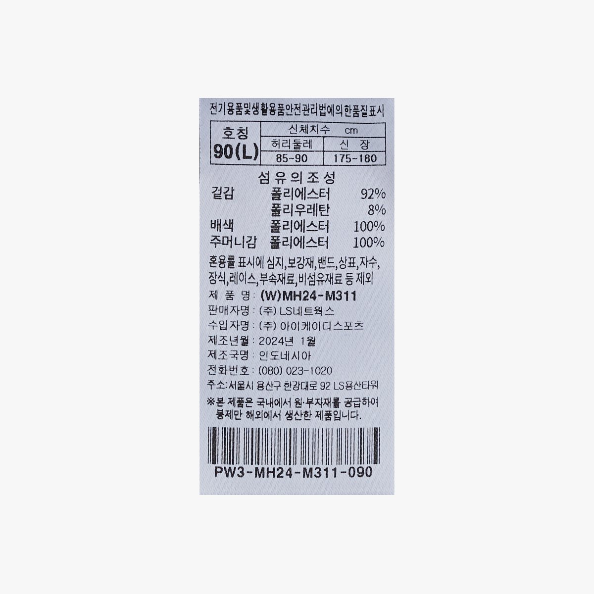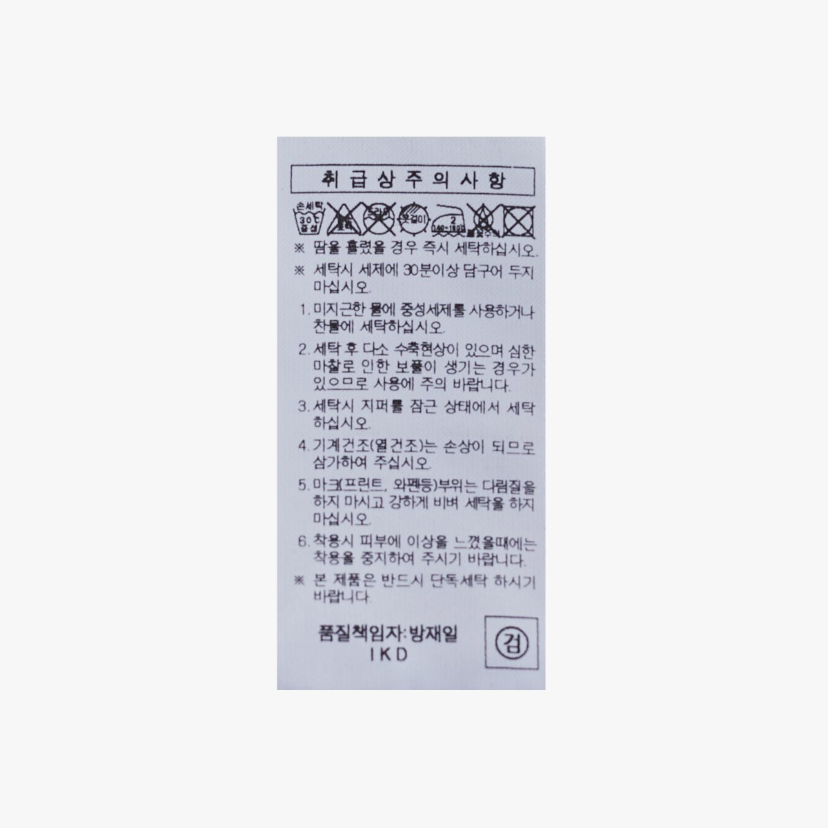 | 제품소재 | 겉감: 폴리에스터 92% 폴리우레탄 8%, 배색: 폴리에스터 100%, 주머니감: 폴리에스터 100% |