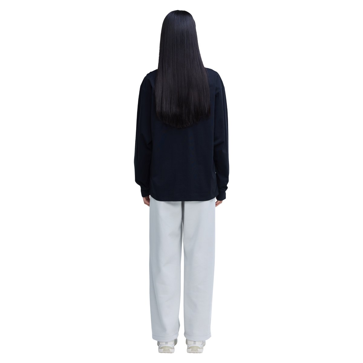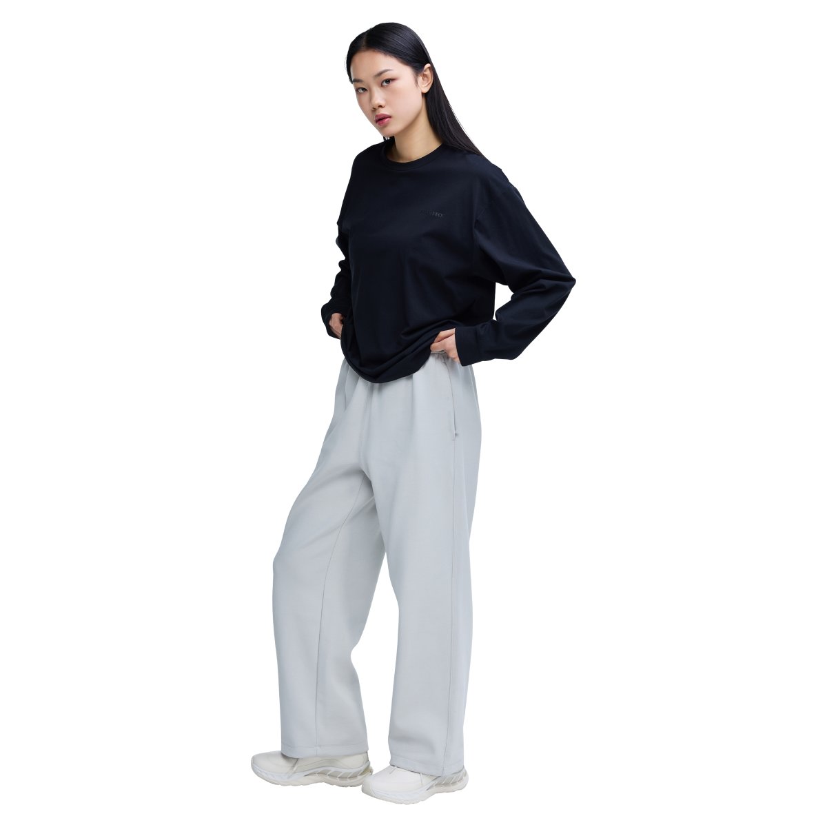 적당한 무게감의 스웨트 소재로 안정적인 실루엣이 유지되는 릴랙스드 핏 팬츠