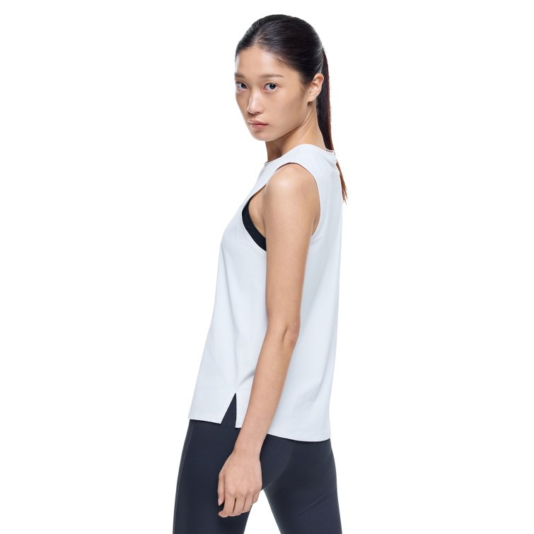 가볍고 부드러운 착용감의 슬리브리스 탑으로 넉넉한 암홀과 곡선형 밑단 디자인을 적용해 운동과 일상에서 편안하게 착용할 수 있는 아이템입니다.