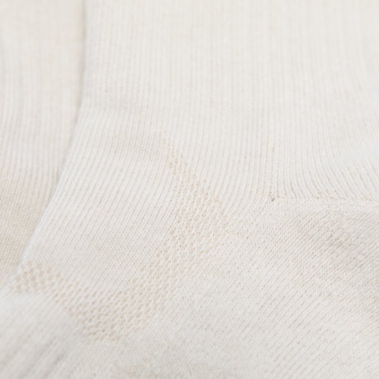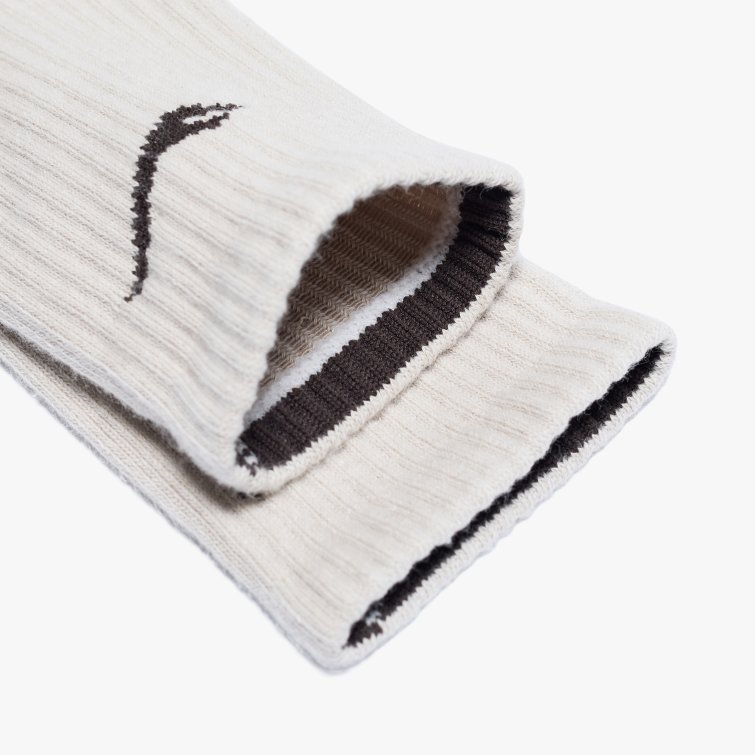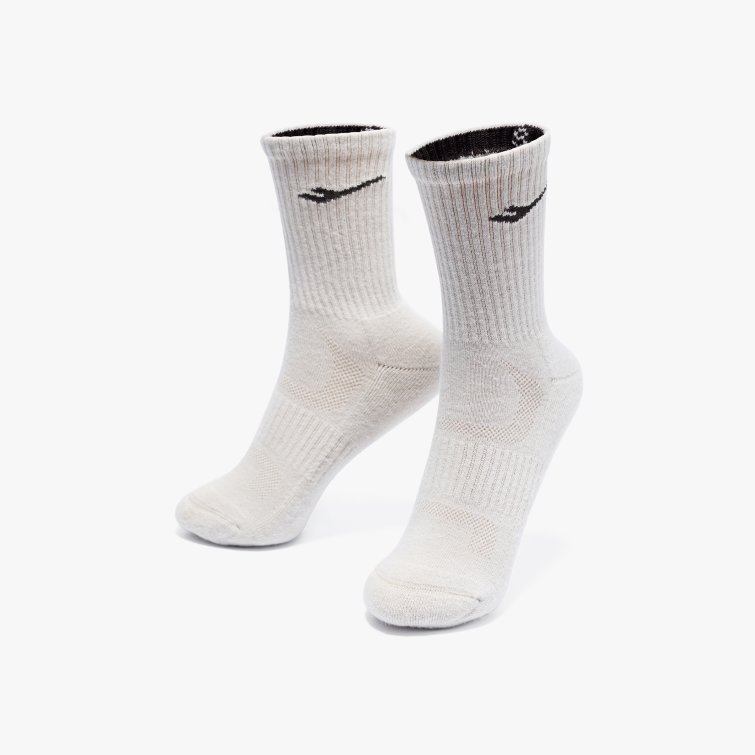 파일 쿠션 구조로 충격 흡수와 통기성을 높인 스포츠 양말로, 립 조직과 로고 자카드 디테일을 적용해 안정적인 착용감을 제공하는 아이템입니다.
