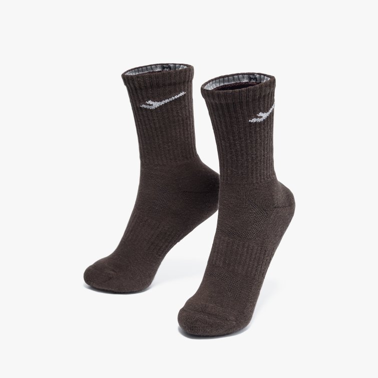 파일 쿠션 구조로 충격 흡수와 통기성을 높인 스포츠 양말로, 립 조직과 로고 자카드 디테일을 적용해 안정적인 착용감을 제공하는 아이템입니다.