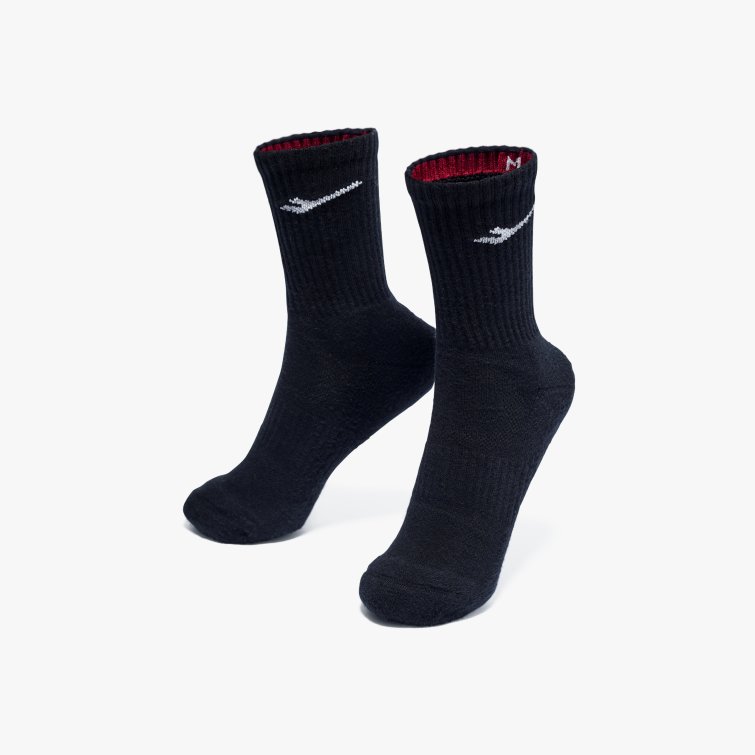 파일 쿠션 구조로 충격 흡수와 통기성을 높인 스포츠 양말로, 립 조직과 로고 자카드 디테일을 적용해 안정적인 착용감을 제공하는 아이템입니다.
