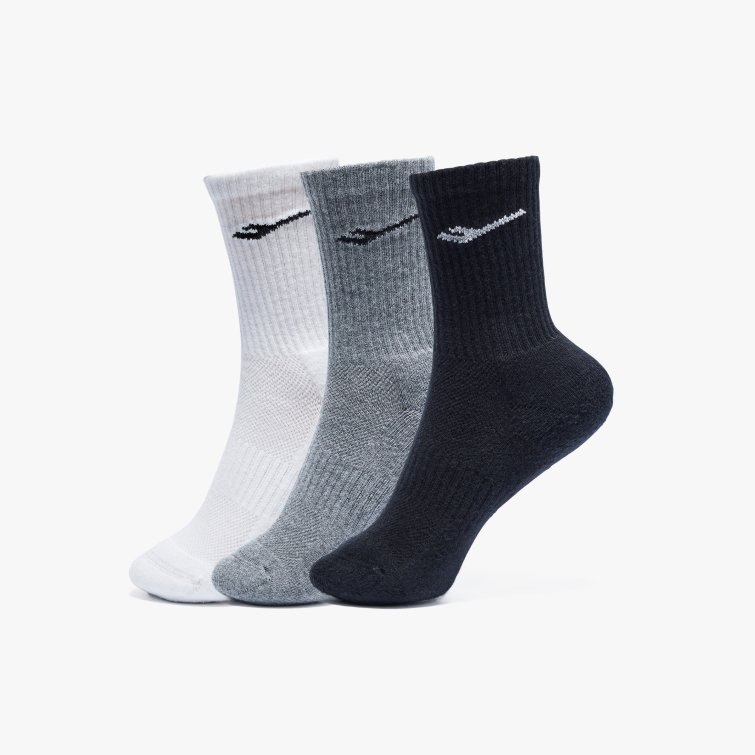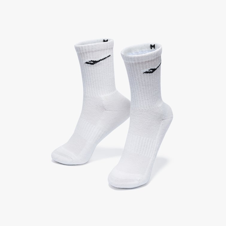 파일 쿠션과 메쉬 구조로 통기성과 충격 흡수를 높인 3켤레 세트 양말로, 립 조직과 로고 자카드 디테일로 안정적인 착용감을 제공하는 아이템입니다.