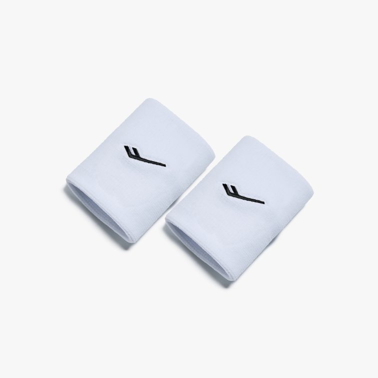 로고 자수 포인트를 더한 베이직 스포츠 손목밴드로, 평면 봉제 마감으로 편안한 착용감을 제공하는 2개 1세트 아이템입니다.